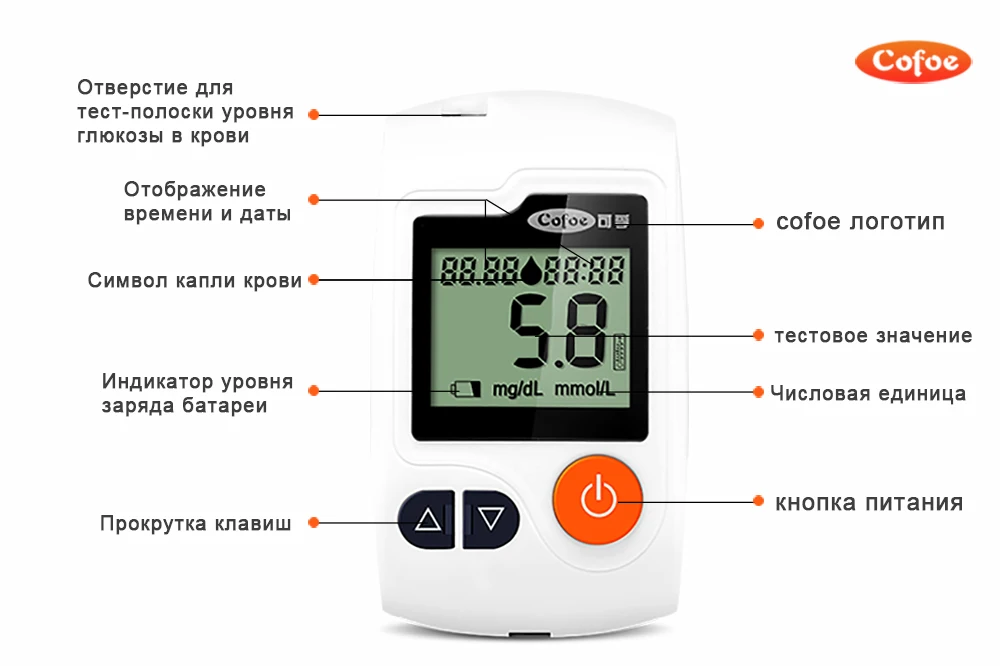 Интеллектуальный глюкометр Cofoe Yili для измерения уровня глюкозы в крови, диабет, глюкометр, бесплатные тест-полоски + ланцеты + спиртовые тампоны