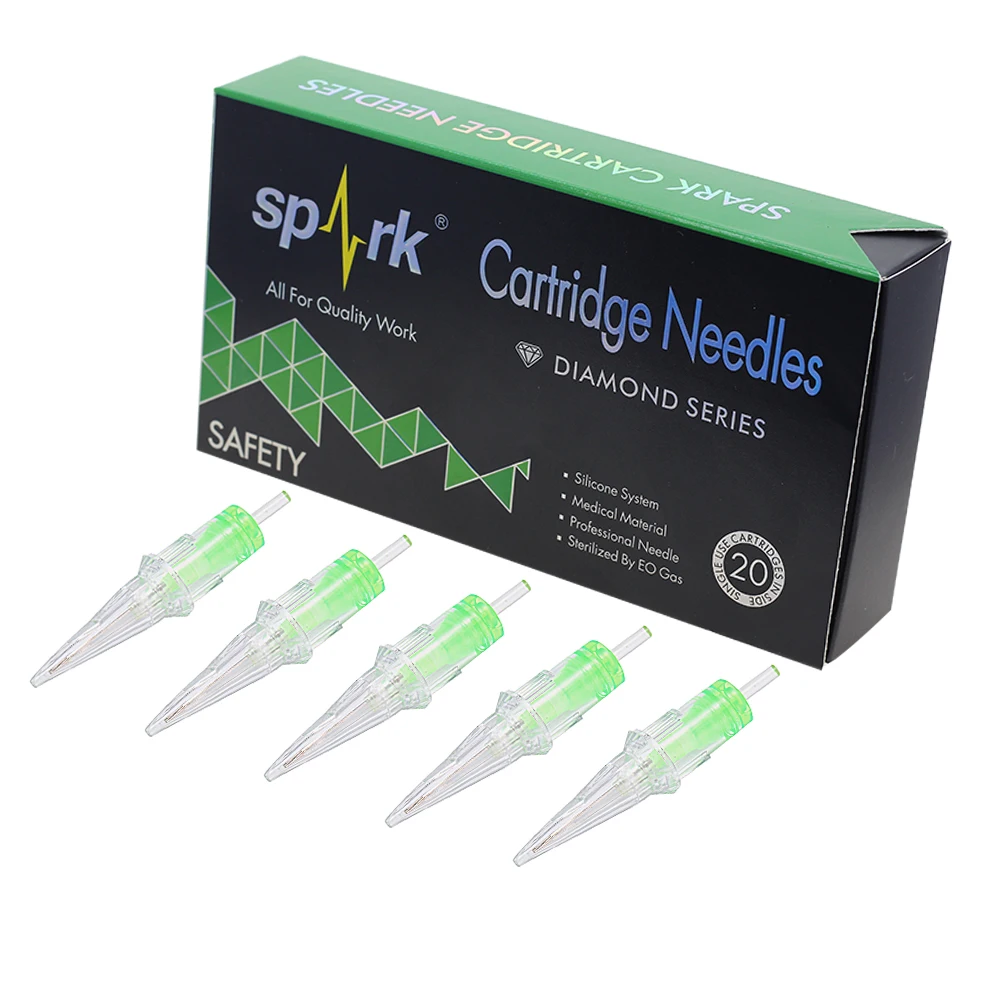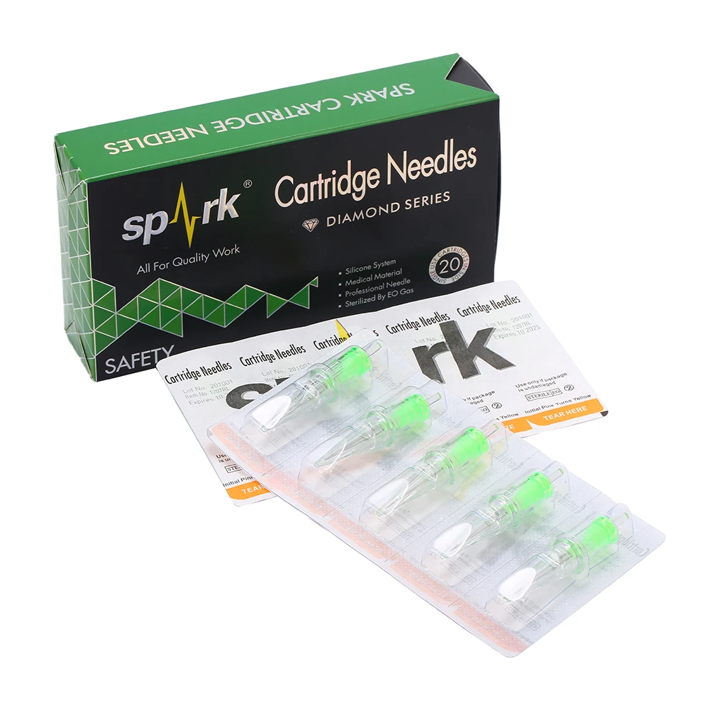 Искра картридж татуировки Needleds Материал: изготовлен из хирургической нержавеющей стали 316L и медицинского пластика Размер: круглые иглы татуировки (1203,1205,1207,1209,1211,1215RL) Цвет: lear Упаковка: 20 шт./лот Особенности 1. Защитная мембрана внутри системы 2. Низкий профиль корпуса и лучший поток чернил и формы внутри 3. Гладкие края устраняют дополнительные травмы 4. Совместимость со всеми типами картриджей захватов машин 5.E.O газ стерилизован и индивидуально упакован