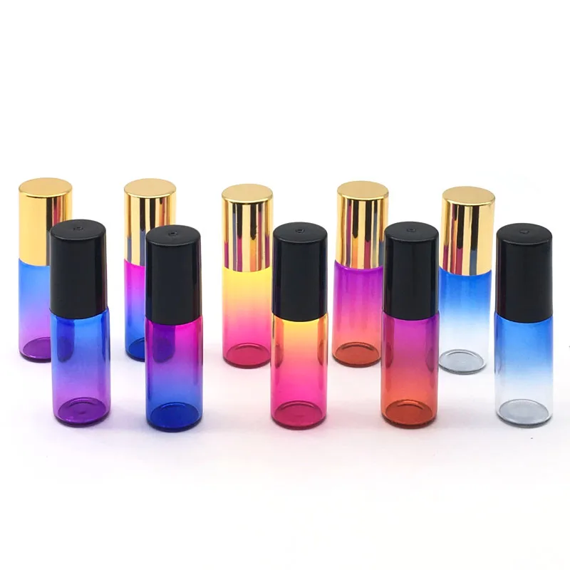 5 мл Градиент красочный рулон на стеклянной бутылке пустой аромат духи эфирное масло 5cc роликовая бутылка черная пластиковая крышка