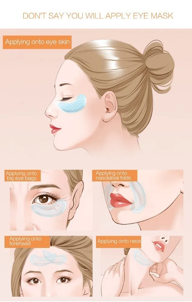 10pcs = 5pairs глаз маска 2pcs за пачку, и вы получите 5packs простой в использовании:коллагеновые маски носить 2 - 3 раза в неделю примерно на 30 минут, чтобы увидеть последствия. как использовать: 1) очистить и вытри лицо 2) осыпается пластик из что, повязка на глаз 3) подпитывание глаз под площади 4) использование в 2 - 3 раза в неделю, носить около 30 минут 5) удалить заплатки, не использовать их пакет, в том числе: 5 x пар глаз маска