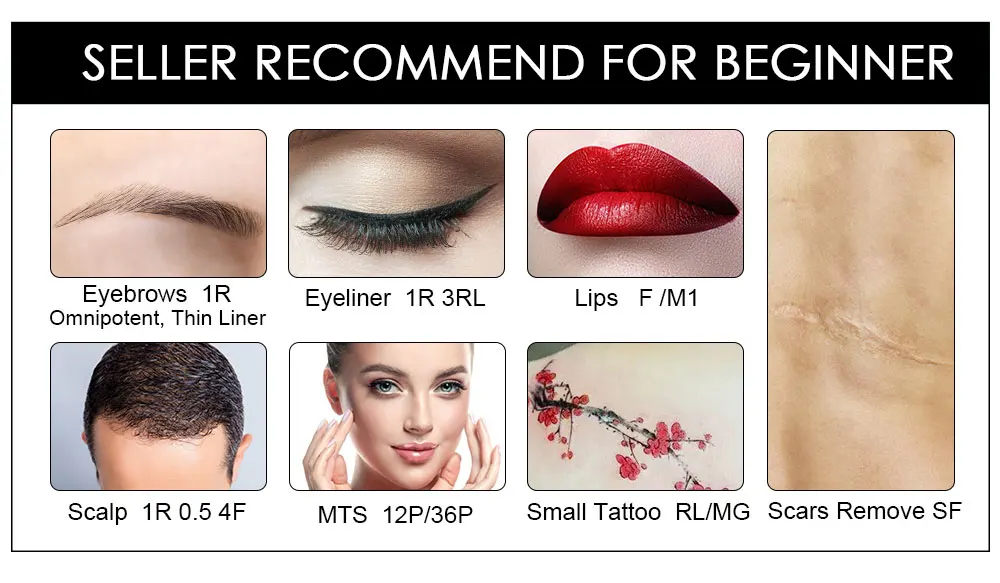 Вопрос и ответы: 1. Какая машина может использовать эти иглы? Подходит для BMX брендовой машины, которые продаются в нашем магазине. P300/HP-100/CQ003/LW002. .. 2. Какой диаметр игл? 1R--0.16 мм 1R--0.18 мм 1R--0.2 мм 1R--0.25 мм 1R--0.30 мм 1R--0.40 мм 1R--0.50 мм 2R--0.40 мм 3/5/7/RL--0.25 мм 3/5/7RS--0.25 мм 3/4/5SF--0.25 мм 5/7MG--0.25 мм 12P--0.25 мм 3. Какую модель мне выбрать? 1R: круглая игла, подходит для тонкой подводки, бровей (самый популярный размер) 2R 3RL: для подводки глаз 3RL 5RL 7RL: толстый лайнер, для тумана бровей, тени для губ RS: шейдеры, брови F /M1: для окрашивания губ 12P:MTS 4. Сколько времени займет доставка? Обычно занимает 2-5 недель. Для России, быстрая скорость составляет 10 дней!