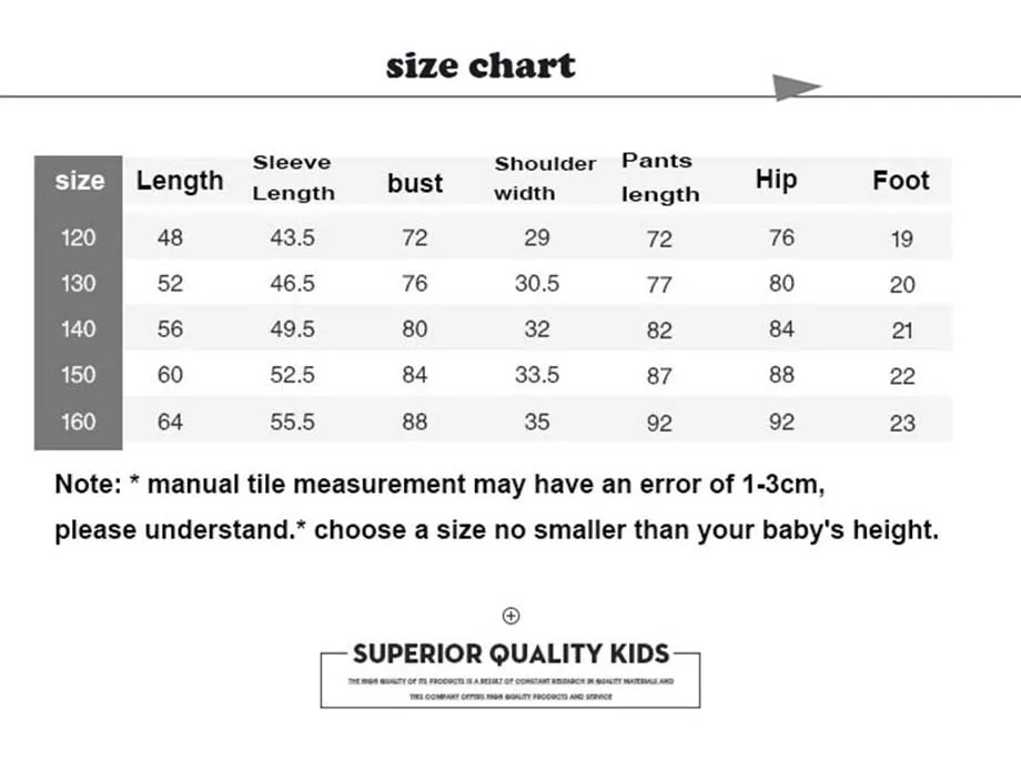 Покупателям необходимо знать, что в этом изделии нет карманов, и разница в цвете между одеждой и одеждой является нормальной. Вес устройства: 0,3 кг Подходит для мальчиков Стиль: Корейский Костюм со брюками Количество комплектов Подходит для маленьких детей (От 3 до 13 лет, 120 ~ 160 см) Подходящий сезон: весна, осень Длина рукава Длина: брюки Плотный флис Основной состав ткани: полиэфирное волокно (полиэстер) Содержание основного компонента ткани 80 (%) Цвета: белый, черный Подходит для роста 120 см, 130 см, 140 см, 150 см, 160 см Советы: 1: Размер всегда рассчитывается в сантиметрах (см). Возможна погрешность в 1-3 см вручную. Пожалуйста, знайте.) 2: Для полных детей, пожалуйста, выбирайте на размер больше.