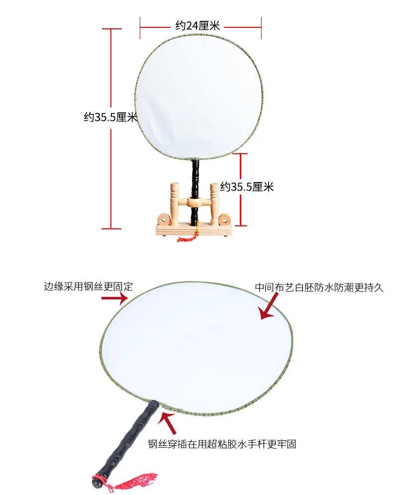 Объяснение: Есть много видов поклонников чистого теста с различными ценами, таких как натуральный шелковый материал, материал, похожий на шелк, полиэстер (Обычная поверхность ткани), большой размер (диаметр вентилятора 24 см), средний размер (23 см) и маленький размер (21 см), деревянная ручка и пластиковая ручка. Поэтому некоторые гости спросят, какая разница в цене, пожалуйста, сравните с тем же материалом. Наши пустые Вентиляторы изготовлены из шелковых материалов и деревянных ручек. Они большие и средние. Ценовые льготы, приветствуем сравнение