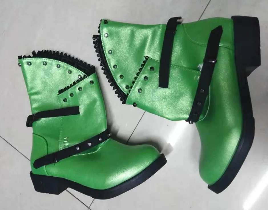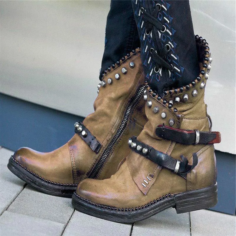 Женские ботинки до середины икры; Винтажные туфли-лодочки из искусственной кожи на низком каблуке с круглым носком; Обувь для женщин; chaussure zapatos mujer; Ботинки с заклепками; HP2160