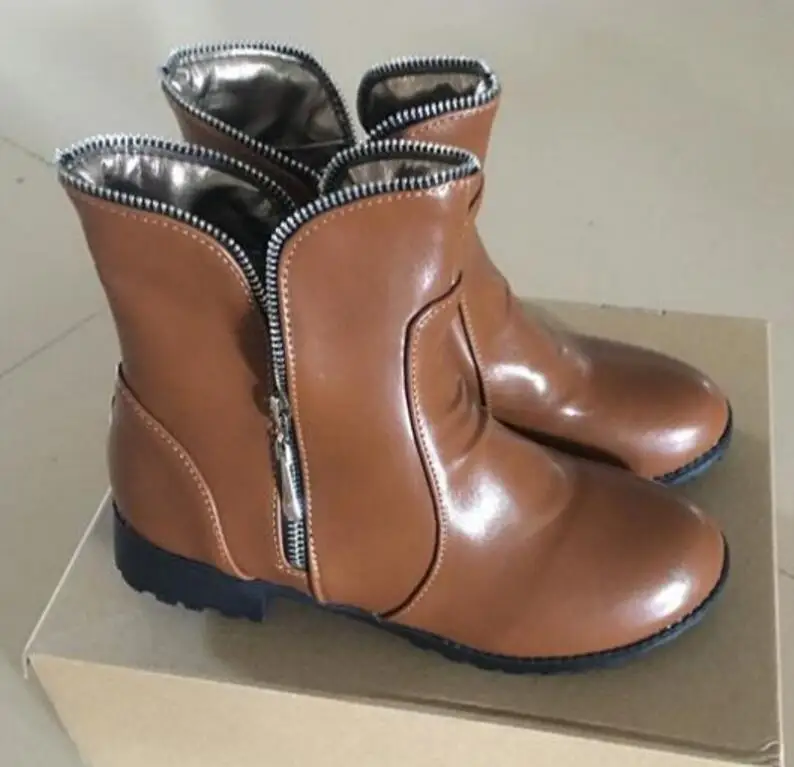 sapato feminino woman ankle Matin boots winter mid heels vintage PU shoes woman girls booties casual chaussures femme AB0008