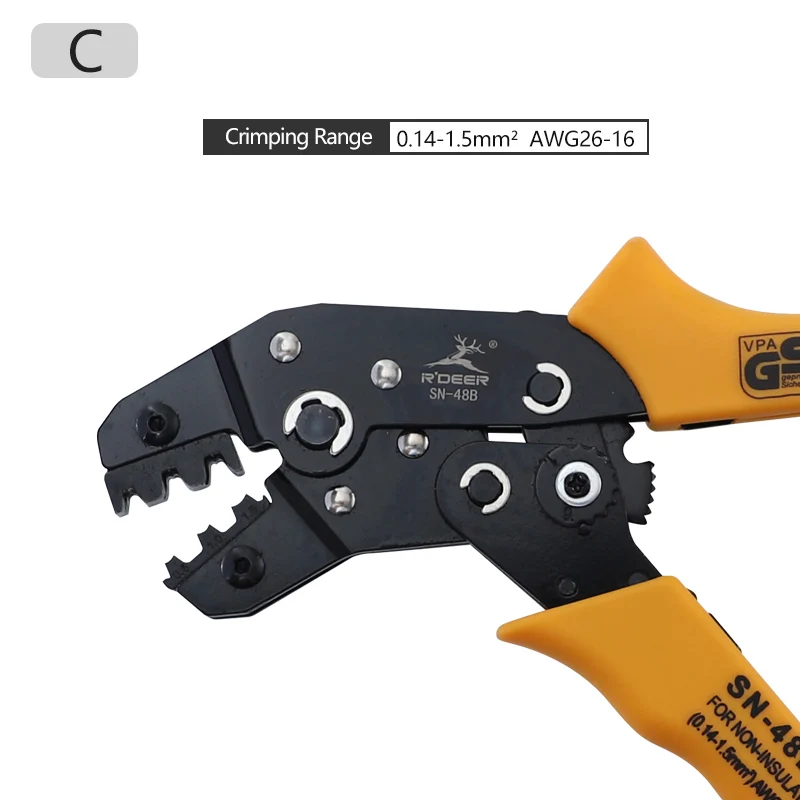 The Crimper SN-02C/SN-48B/SN-06WF are made of hardened alloy steel, tensile strength.Ratchet device to ensure crimping effect.