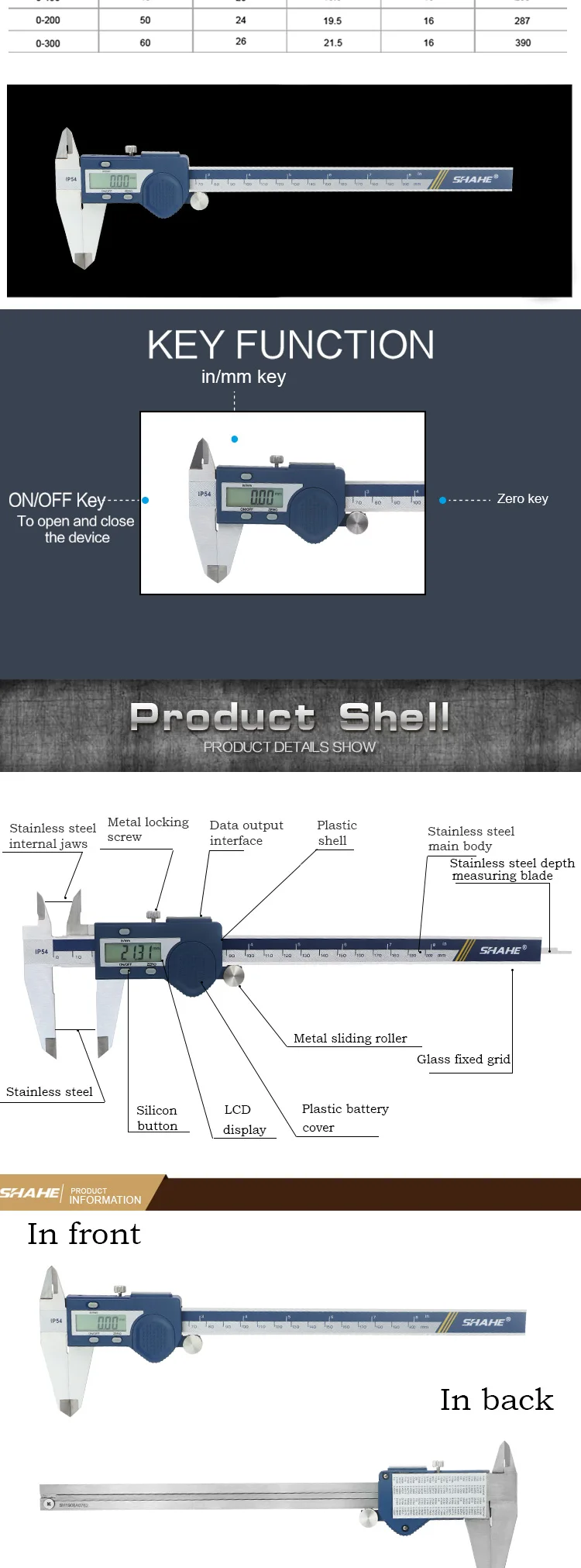 1. Закаленная рама из нержавеющей стали и измерительные челюсти