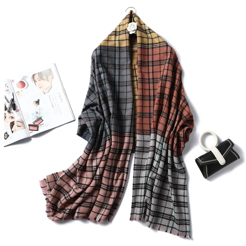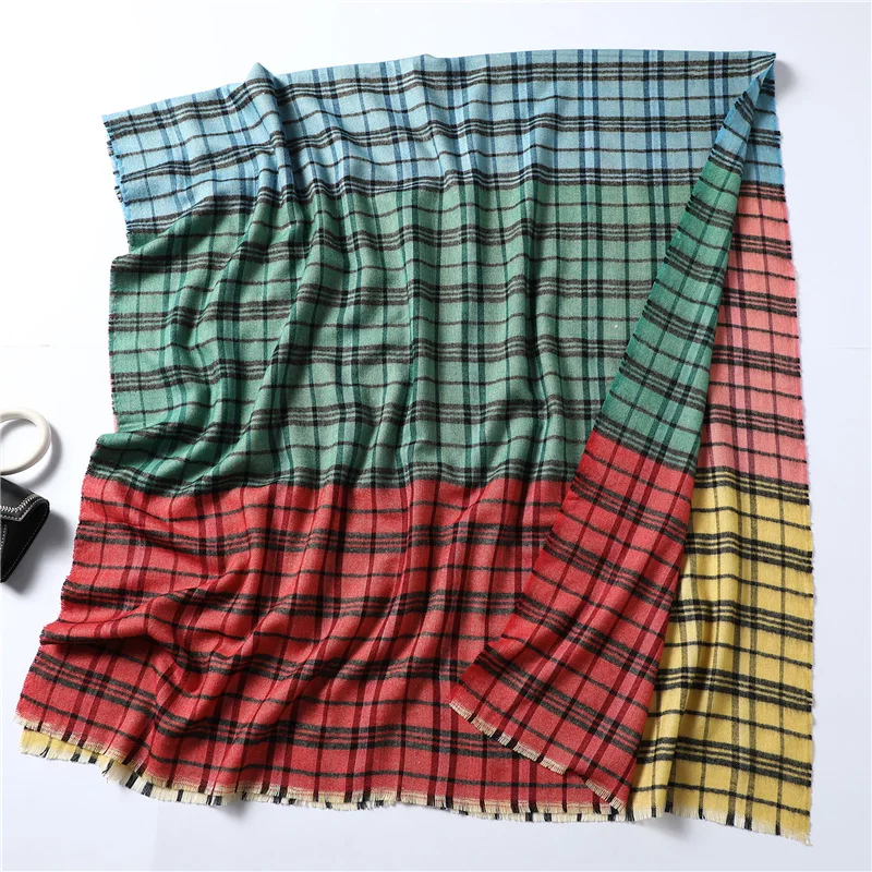 Роскошная брендовая кашемировая шаль 2019, зимние теплые женские клетчатые шарфы, женские шали и палантины с кисточками, 200*100 см, bufanda