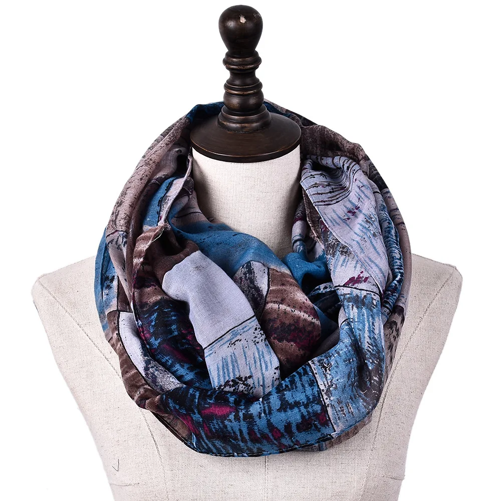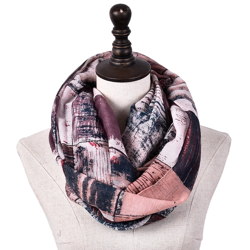 Женский клетчатый шарф-кольцо, дизайнерский теплый шарф-петля в стиле ретро, шарф-кольцо с принтом, зима из мягкой вуали