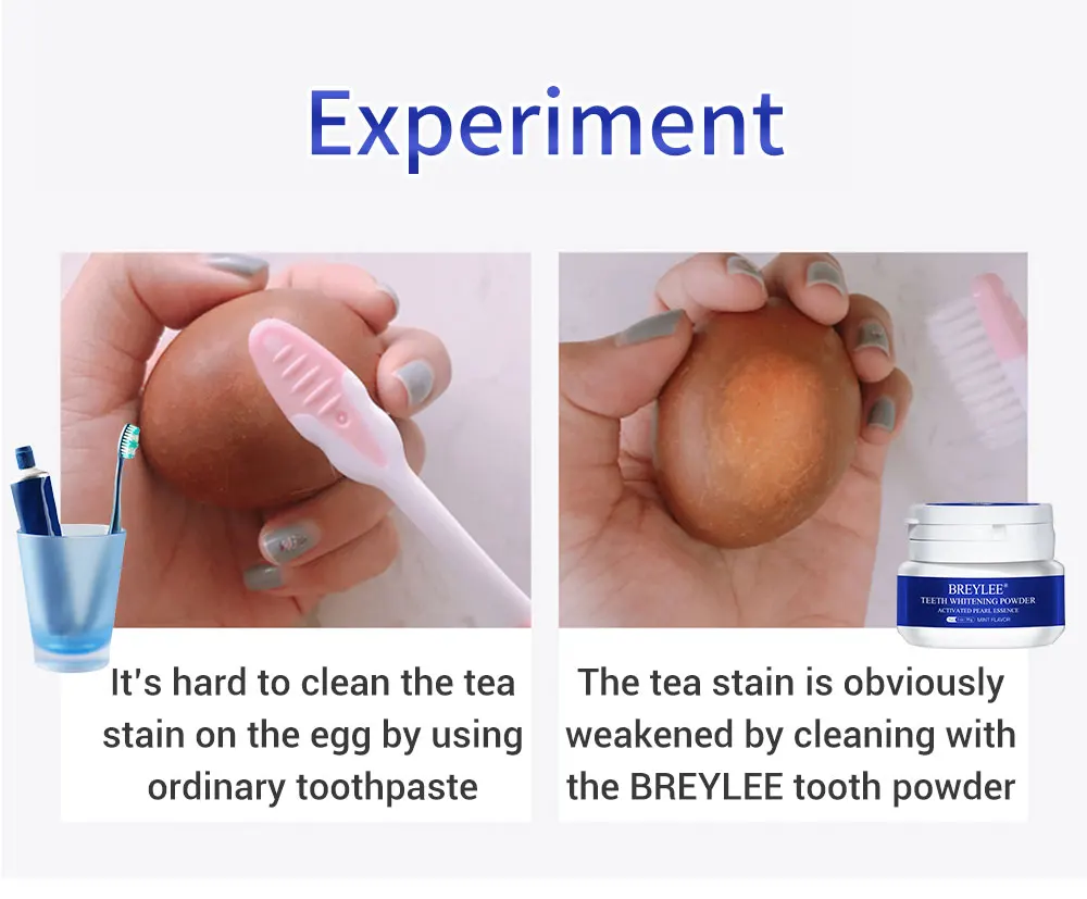 Эксперимент Трудно очистить пятно чая на яйце с помощью обычной зубной пасты Чайное пятно, очевидно, ослаблено чисткой с порошком для зубов BREYLEE