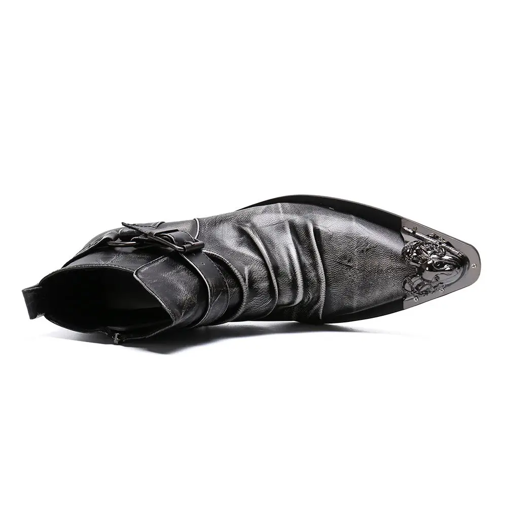Beertola/ботильоны с ремешком; Мужские ботинки из натуральной кожи с металлическим декором в стиле ретро с острым носком на молнии; Мужские ботинки наивысшего качества; Большие размеры