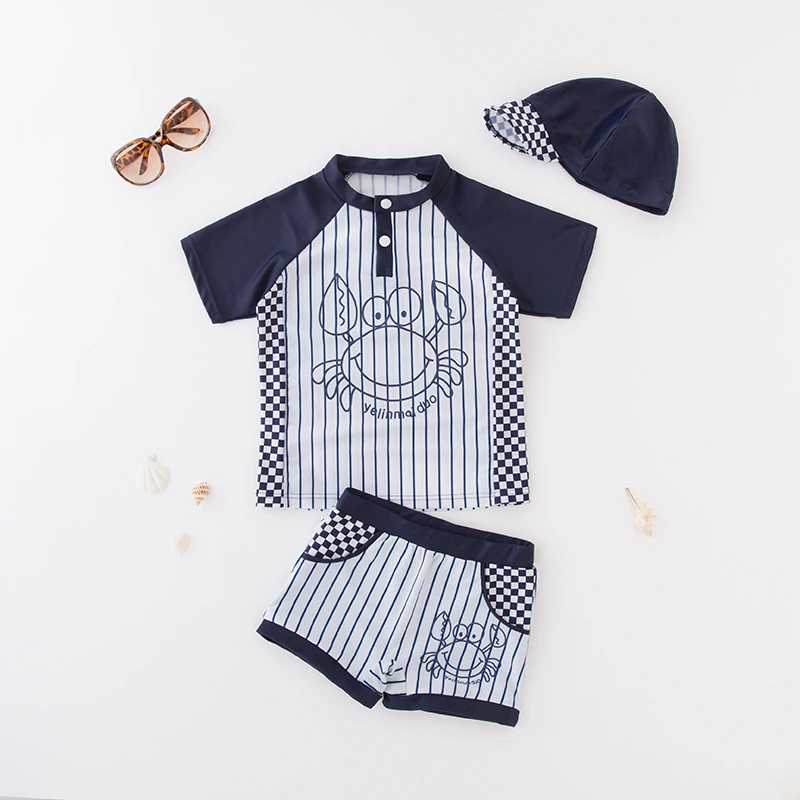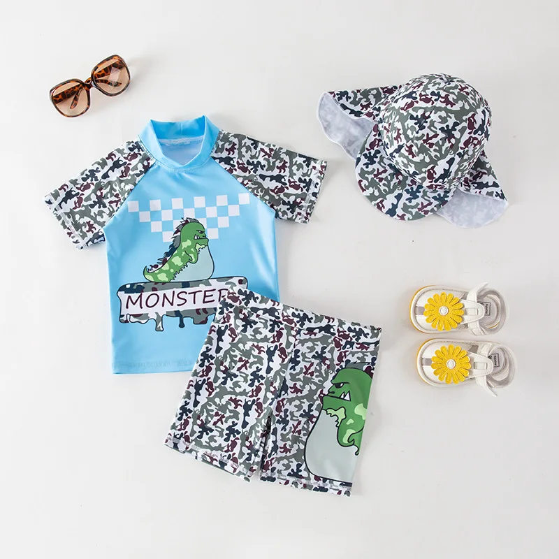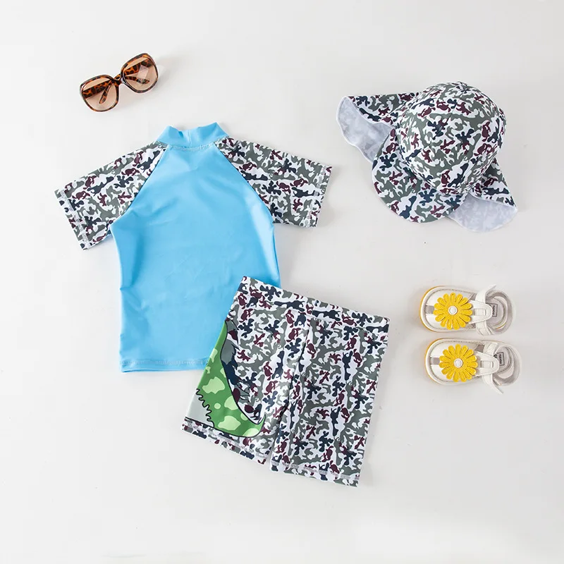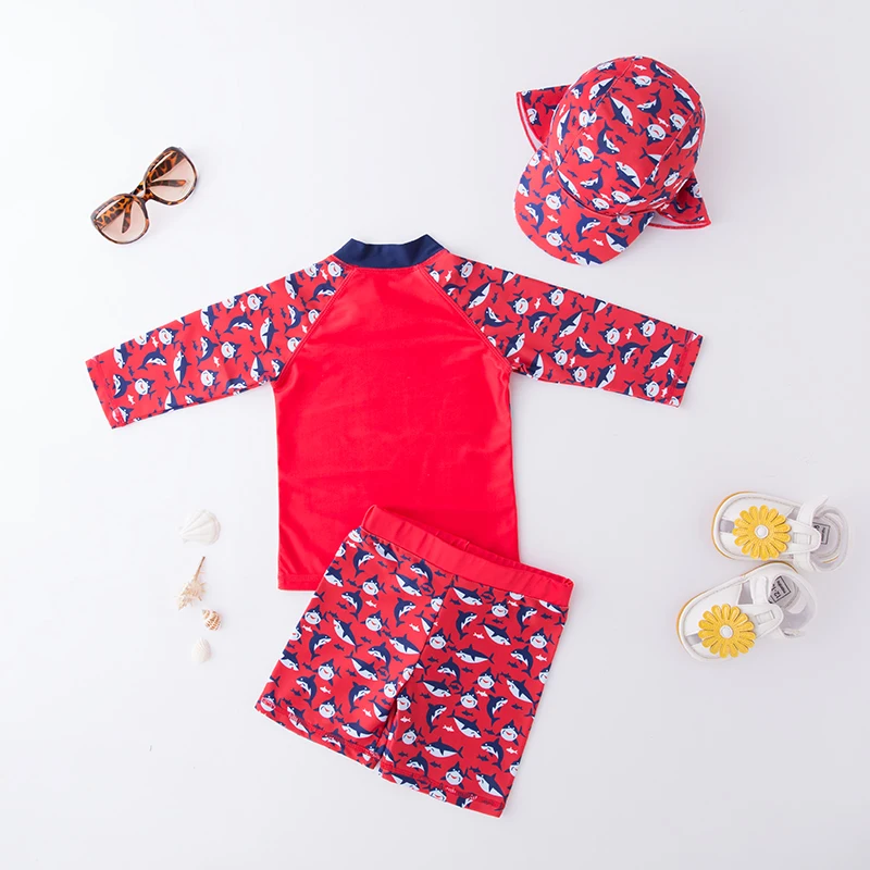 Детский купальный костюм с защитой от ультрафиолета, 3 предмета, детский купальный костюм, детский пляжный купальный костюм с принтом динозавра акулы для мальчиков