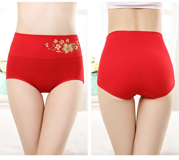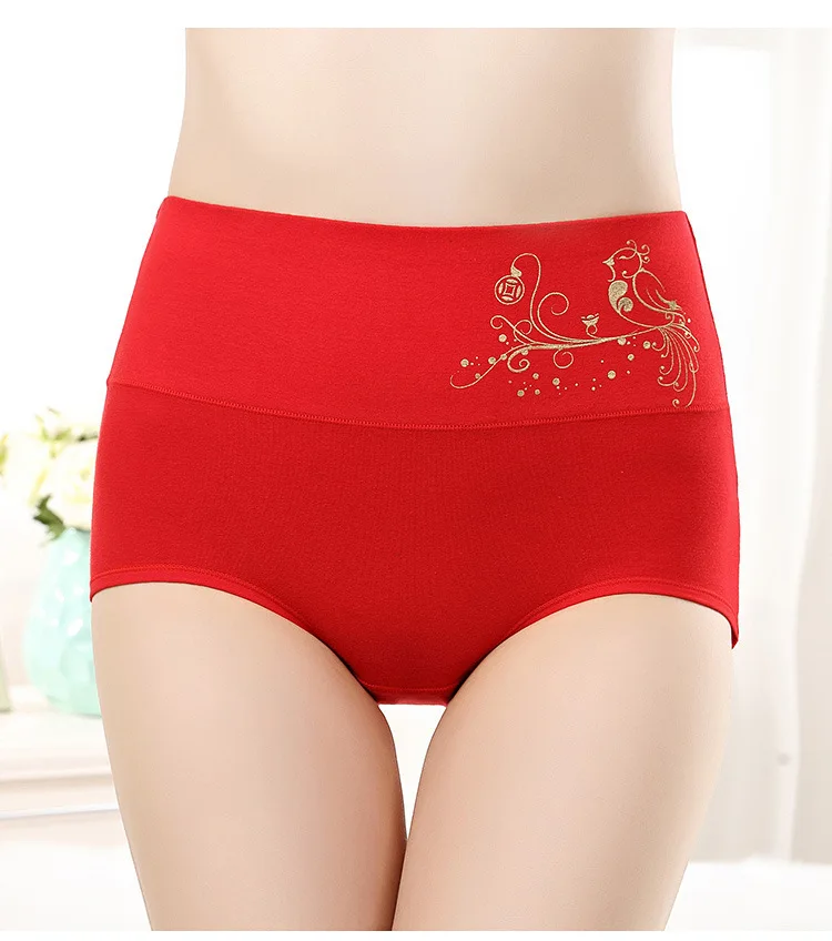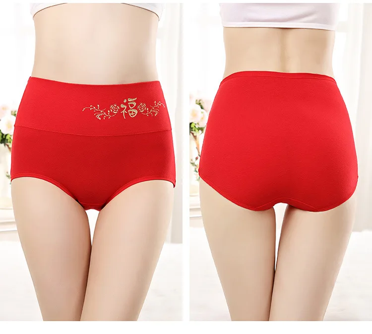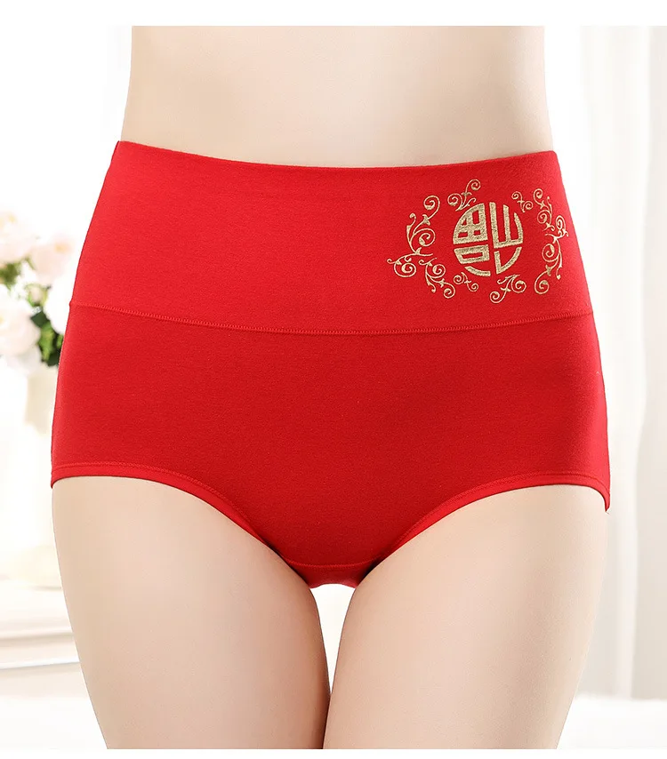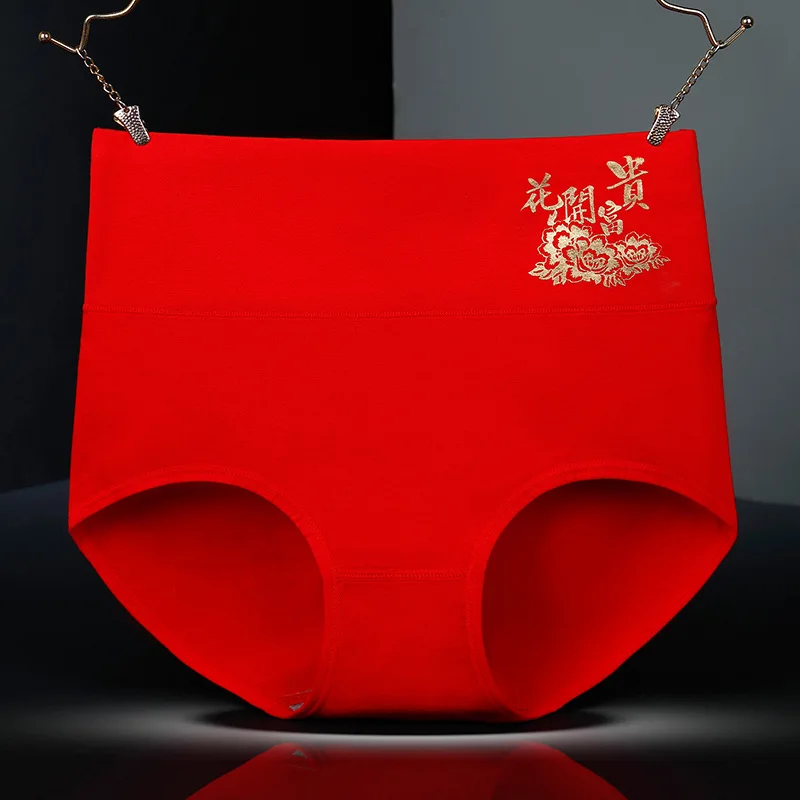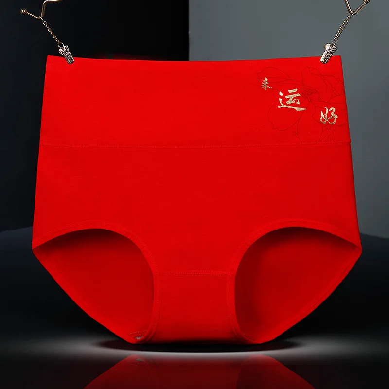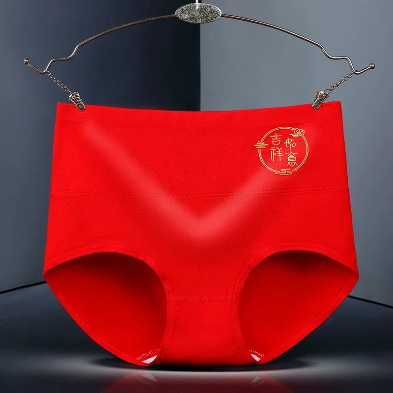 Женское нижнее белье с высокой талией, красные хлопковые трусы С Рисунком Тигра, китайские иероглифы