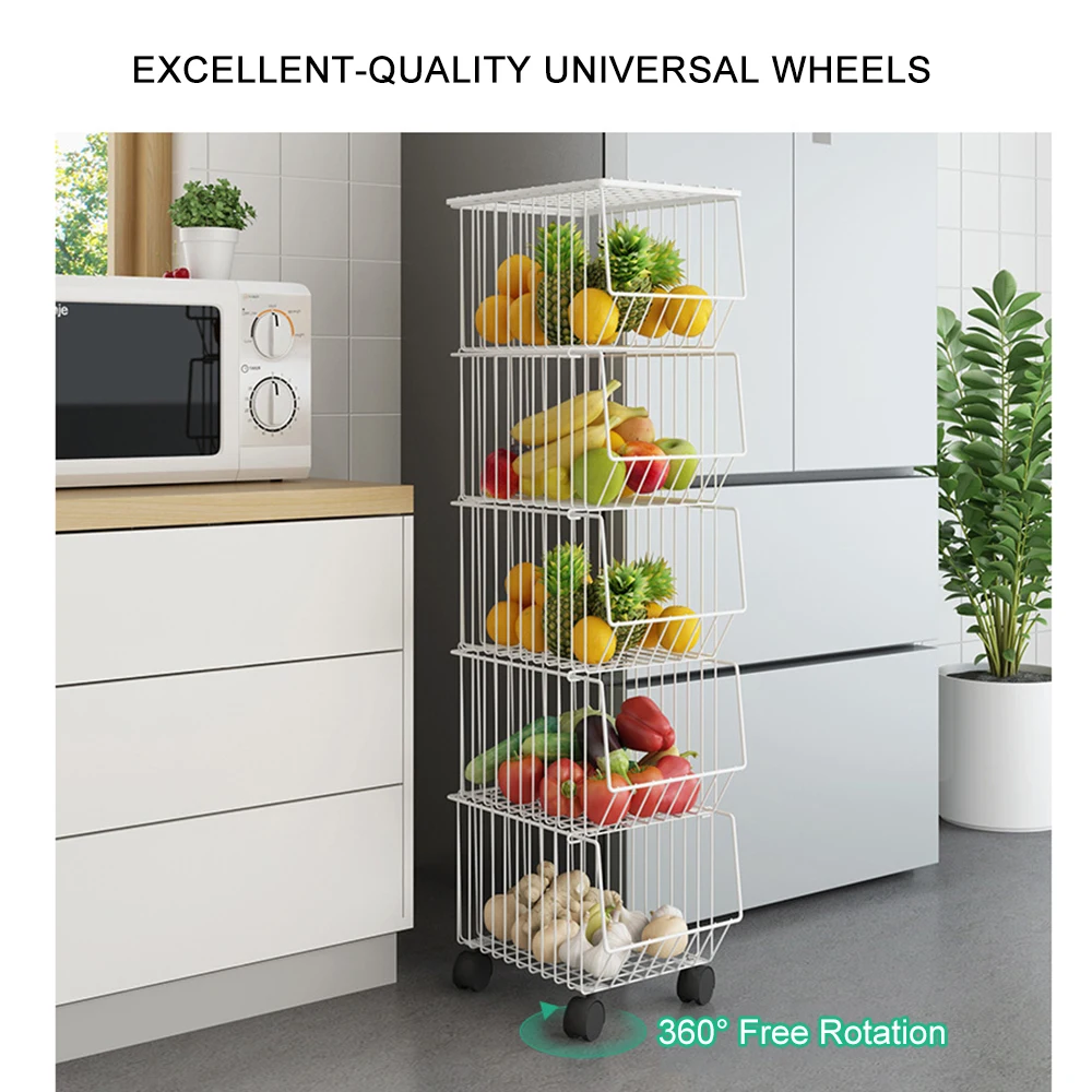 Красивый и практичный дизайн:Выбор цвета по желанию соответствует индивидуальному вкусу и требованию. Сетчатый дизайн обеспечивает сушку окружающей среды для хранения фруктов и овощей, что предотвращает питание от плохого легко. Колеса под корзиной помогут вам перемещать и легко положить стойку в любом месте. И вы можете разместить стойку без колес на столе в зависимости от вашей ситуации.