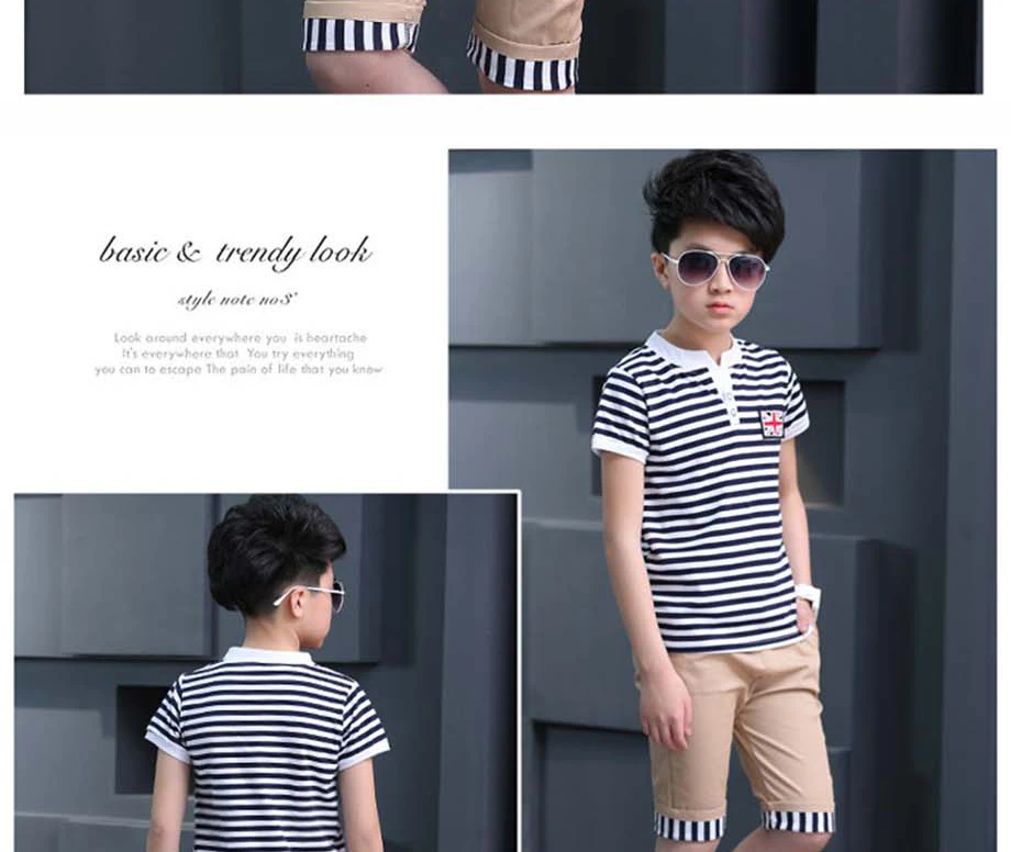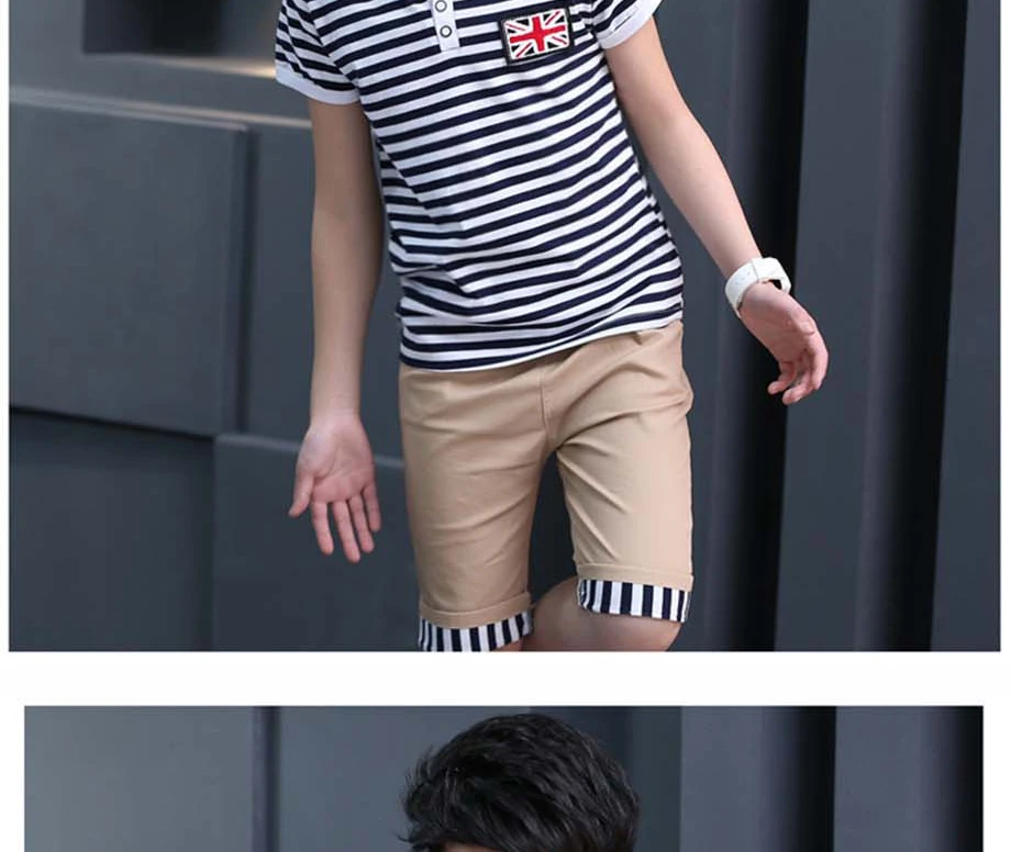 Летняя одежда для мальчиков, 2020 Новая повседневная детская одежда, комплект для мальчиков, полосатая футболка с короткими рукавами + короткие штаны, Детский костюм для 7, 8, 9, 10, 12 лет