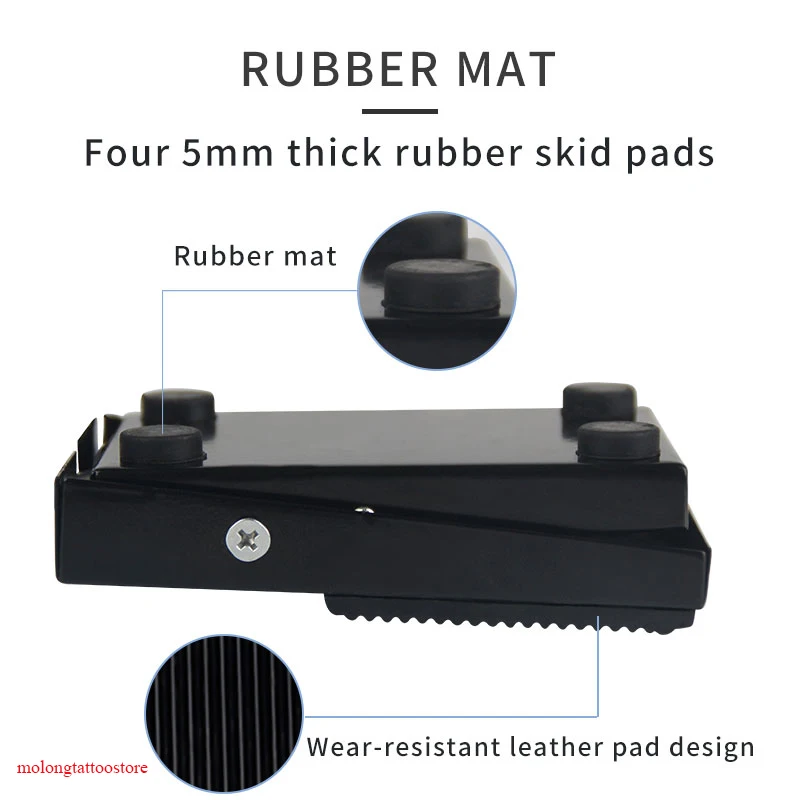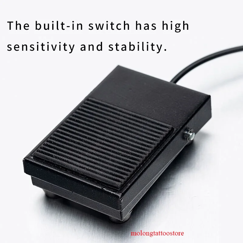 Противоскользящий резиновый коврик с желобками на верхней части для лучшей фиксации. Фоно-штекер подключается к любому блоку питания татуировки. Характеристики: Цвет: черный Материал: акрил Длина шнура: ок. 1,5 м/5 футов Размер педали: ок. 9,7*6,6*2,2 см (3,8*2,6*0,9 ") Вес: 193 г/6,8 унции Комплектация: 1 * Педаль для татуировки