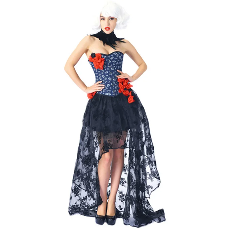 Наименование товара: платье-корсет Номер товара: K005 + 1246B + 7037 Включает: 3 предмета (нагрудник + корсет + юбка) Цвет: черный и синий Кости: 14 пластиковых костей