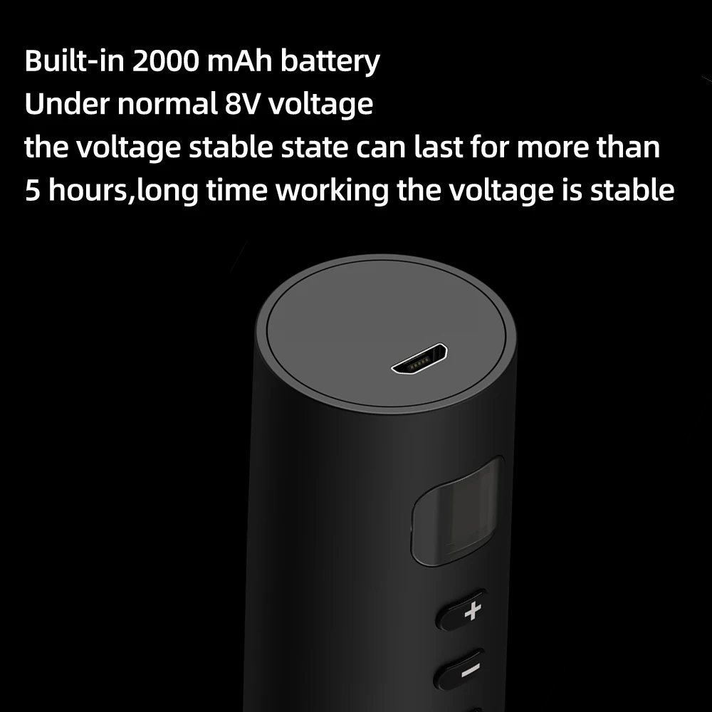 3. Хранение энергии: быстрая зарядка через соответствующий Быстрый зарядный usb-кабель для передачи данных. Обычно он может полностью заряжаться в течение 1,5-2 часов. Он полностью заряжен 4 Сетками. Может использоваться около 5-6 часов при включении 8 в. Напряжение стабильное. Последняя зарядка аккумулятора должна быть перезаряжена, чтобы обеспечить время использования.
