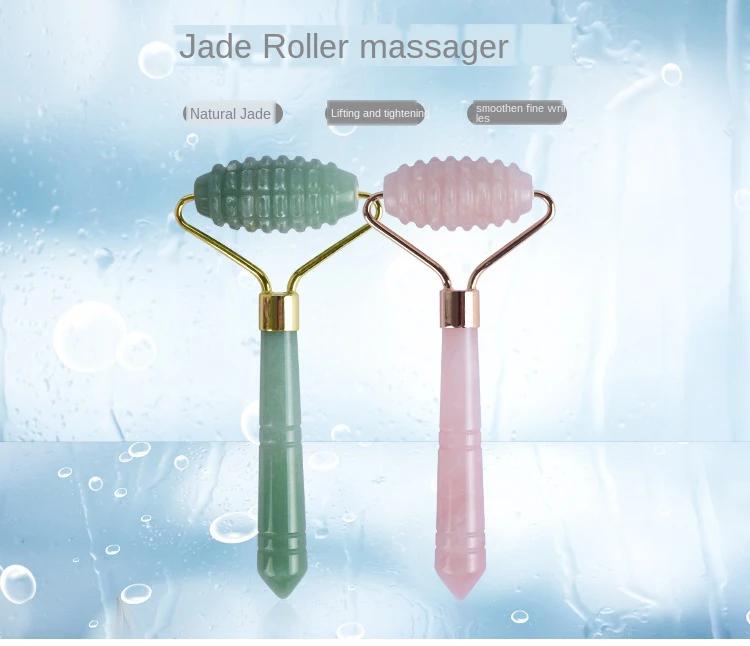 Массажный ролик для лица с двойными головками, Нефритовый камень, подтяжка лица, расслабление кожи рук, похудение, красота, здоровье, инструменты для ухода за кожей