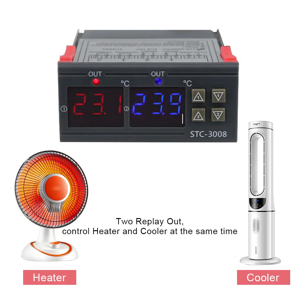 STC-3008 компьютерный цифровой дисплей Интеллектуальный двойной контроль электронный термостат двойной дисплей двойной температурный регулируемый термостат переключатель