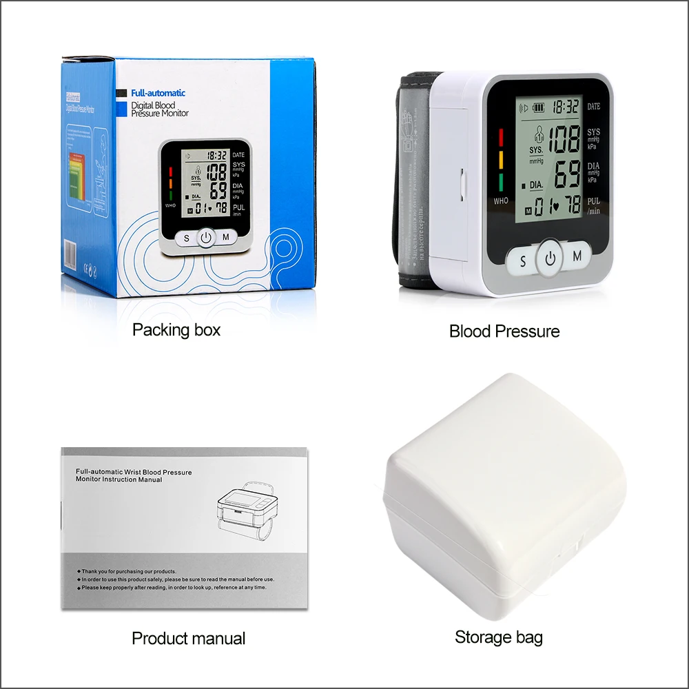 Эта модель полностью автоматический цифровой монитор артериального давления для измерения запястья может легко и быстро измерить артериальное давление и количество пульса