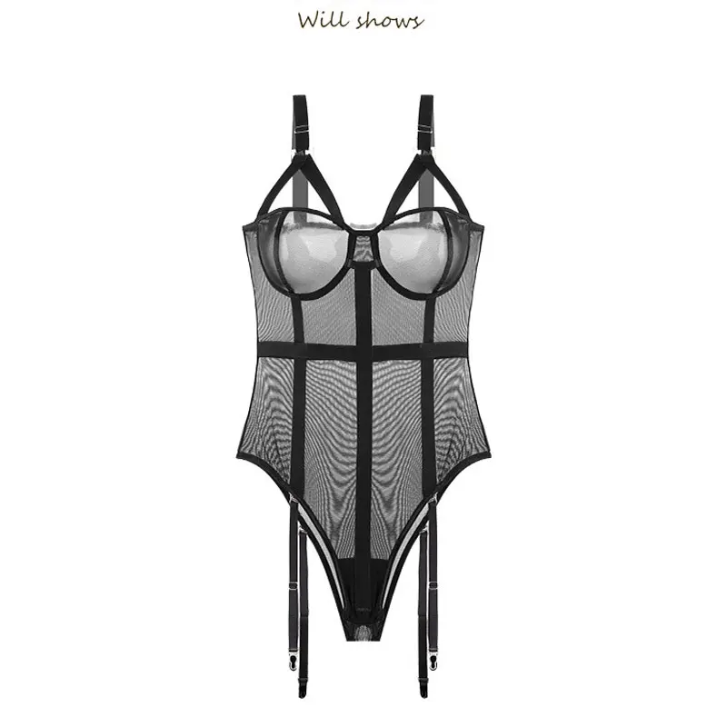 Женское Сексуальное Кружевное боди, сетчатый комбинезон, подтяжки, нейлоновый боди, подвязки, уличная одежда