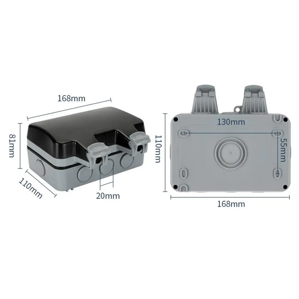 1. Водонепроницаемость IP66: с наружной водонепроницаемой двойной розеткой и классом защиты IP66, розетка может обеспечить отличную безопасность водонепроницаемого уплотнения при закрытии. Это идеальный выбор для безопасного источника питания в сложных условиях.