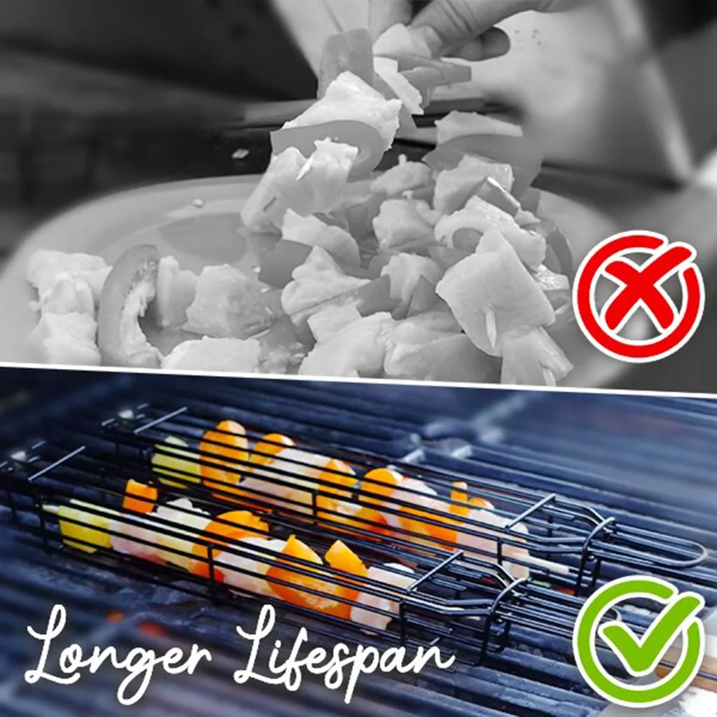 Изготовлен из тяжелой стали с антипригарным покрытием. В отличие от обычных барбекю Шампуры, эти цельнометаллические корзины крепкие и никогда не горят.