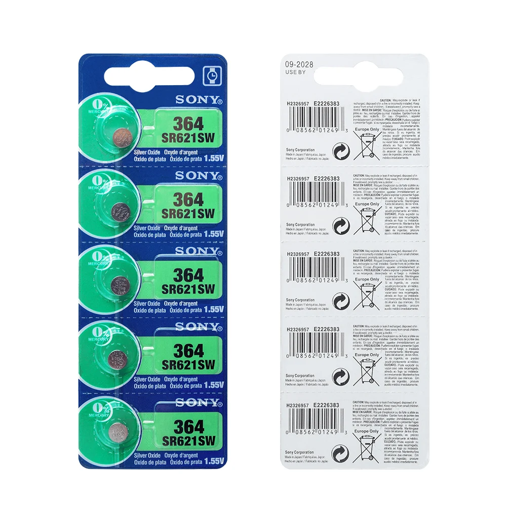 10 шт./лот, для Sony 364, оригинал, 1,55 в, оксид серебра, часы, батарея 364, SR621SW, V364, SR60, SR621, AG1, Кнопочная монета, сделано в Японии Особенности 100% Новинка! Высокое качество 364/363/SR621SW батареи кнопки монет батареи, большая мощность для миниатюрные устройства. Прочный и экономичный, высокая плотность энергии, обеспечивает более длительный срок службы батареи и длительную мощность. Безопасность и отсутствие утечки, без ртути класса А, протестированы под строгими стандартами контроля качества. Используется для электрической игрушки, калькулятора, материнской платы компьютера, часов, камеры, автомобильной охранной сигнализации, автомобильных пультов без ключа, электронного слухового аппарата, КПК, электронных органайзеров, Ошейников для домашних животных, счетчика, дистанционного управления, электронного инструмента, измеритель уровня глюкозы в крови, измеритель уровня холестерина, светодиодный светильник и другие электронные приборы. Также известный как:AG1, LR621, D364, SP364, 602, 164, 280-34, SB-AG/DG, SR60, SR60L, SR621, GP364, T, V364,531, 364A, CX60, G1, LR60, LR621W, T, TR621, TR621SW,И т. д. Технические характеристики Модель: 364/363/SR621SW Химия: оксид серебра Номинальное напряжение: 1,55 в Номинальная емкость: 19 мАч Срок годности: От 2 до 3 лет Перезаряжаемый:Нет(Одно использование) Диаметр: 6,8 мм/0,27'' Высота: 2,1 мм/0,08'' Эквивалент/Замена для: AG1, LR621, D364, SP364, 602, 164, 280-34, SB-AG/DG, SR60, SR60L, SR621, GP364, T, V364,531, 364A, CX60, G1, LR60, LR621W, T, TR621, TR621SW,И т. д. Внимание 1. Пожалуйста, допускайте небольшое отклонение цвета между бумажными картами и изображениями. 2. Пожалуйста, храните изделие батареи недоступном для ваших детей в чехол они глотать. 3. Пожалуйста, храните батареи в сухом и прохладном месте. Посылка в комплекте 10 батарей для монет