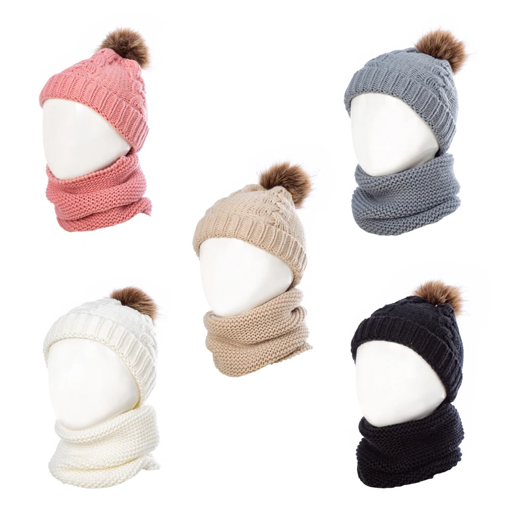 Комплект для новорожденных мальчиков и девочек: шапка с помпонами + шарф