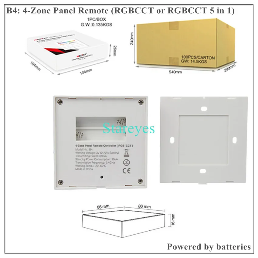 Название продукта:4 зоны Панель пультом дистанционного управления (RGBCCT)